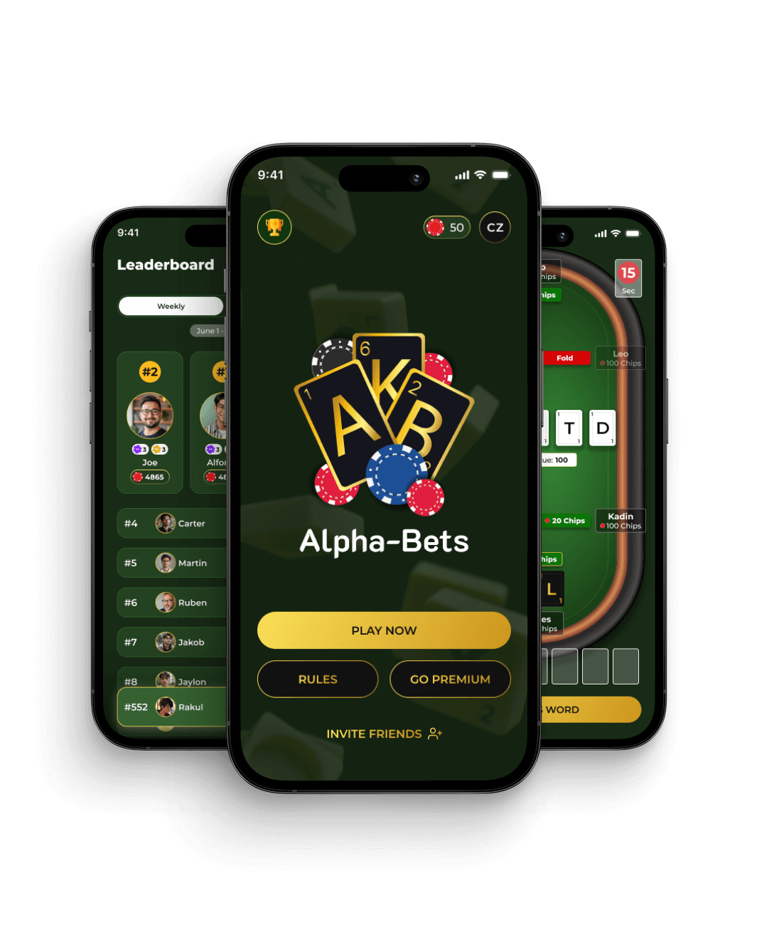 Wager your chips, build the smartest words from the shared board, and see who walks away with the pot.